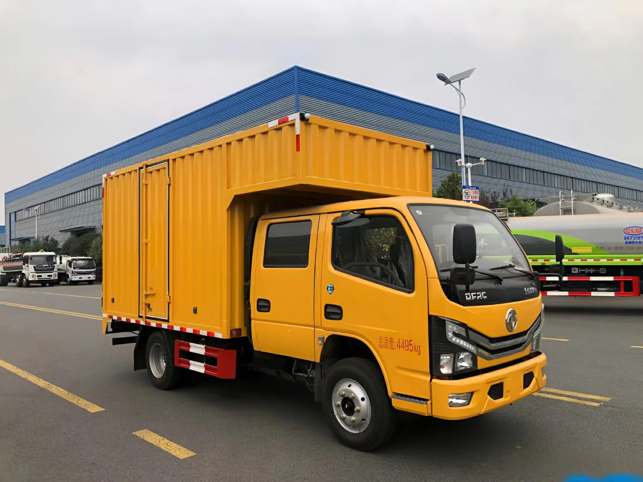 | 上裝配置 | 箱體采用瓦楞箱體,側(cè)面和后面各一個雙開門,箱內(nèi)設(shè)計兩個貨架,箱內(nèi)設(shè)計照明燈,安裝液壓動力系統(tǒng),三套液壓動力取力快速接口,帶控制面板兩臺4寸的渣漿泵,帶水帶和液壓管(帶快接)裝一個液壓驅(qū)動空壓機(jī),一個800公斤12V電控小吊機(jī)安裝3500W逆變器,帶電控箱,其他程力專用車廠家標(biāo)配… | ||