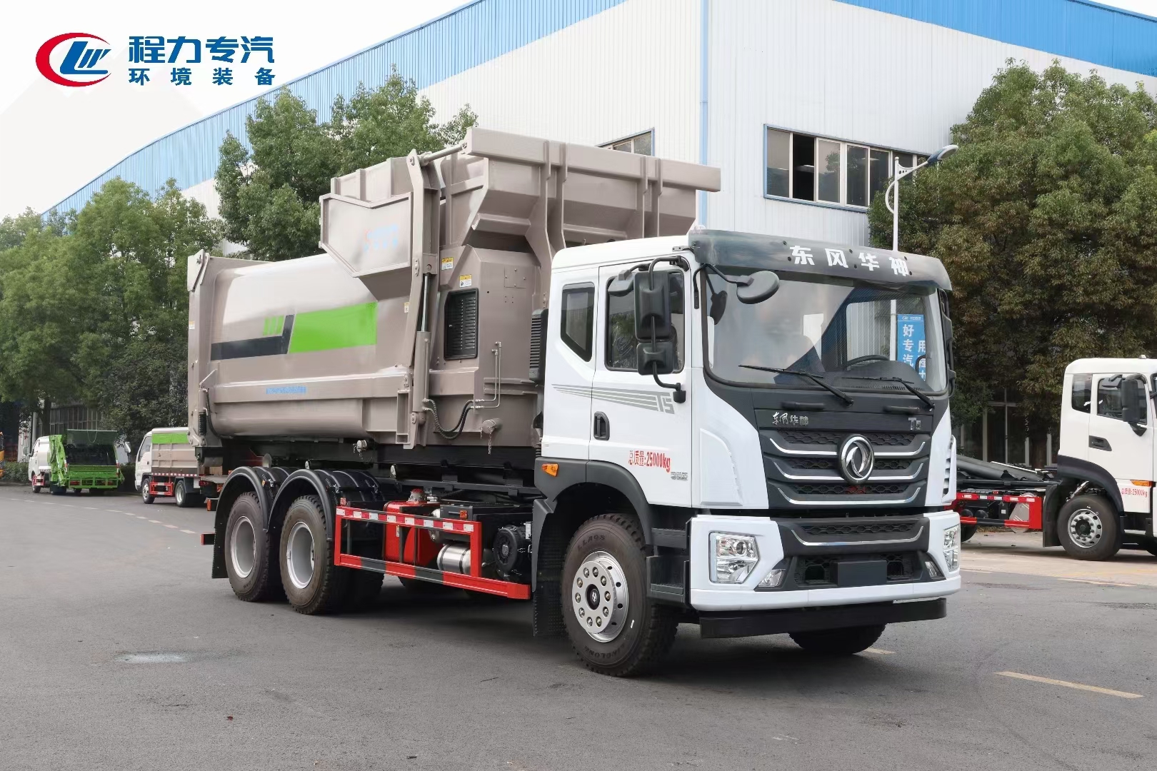 程力專(zhuān)汽東風(fēng)華神后雙橋勾臂垃圾車(chē)+移動(dòng)壓縮箱