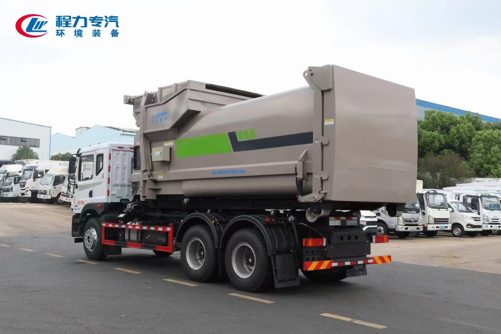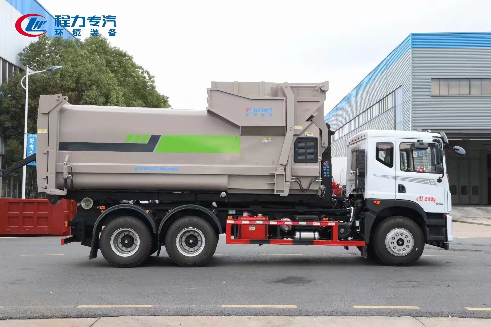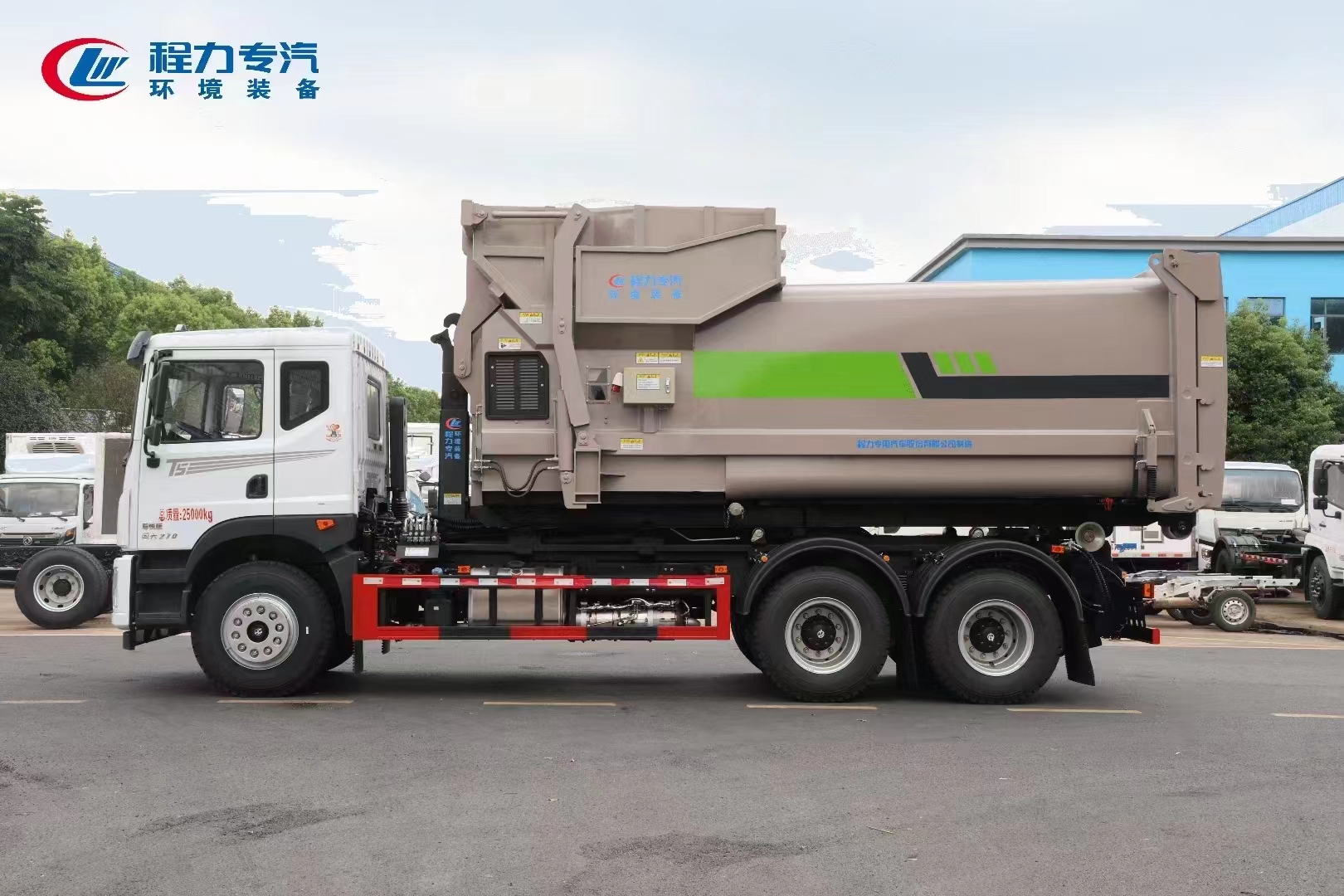 ??????湖北程力汽車(chē):程力專(zhuān)汽東風(fēng)華神后雙橋勾臂垃圾車(chē)+移動(dòng)壓縮箱產(chǎn)品型號(hào)及參數(shù)配置,程力專(zhuān)汽東風(fēng)華神后雙橋勾臂垃圾車(chē)+移動(dòng)壓縮箱高清圖片,程力汽車(chē)系列程力專(zhuān)汽東風(fēng)華神后雙橋勾臂垃圾車(chē)+移動(dòng)壓縮箱最新報(bào)價(jià)請(qǐng)撥打客服熱線。車(chē)輛主要配置 產(chǎn)品名稱(chēng): 程力威牌CLW5253ZXXBHJ車(chē)廂可卸式垃圾車(chē) 外形尺寸: 828025503170(mm) 排放水平: 國(guó)六 貨箱尺寸: (mm) 總質(zhì)量: 25000(Kg) 接近/離去角: 15/19,15/20,15/21() 額定質(zhì)量: 14250,14185(Kg) 前懸后...