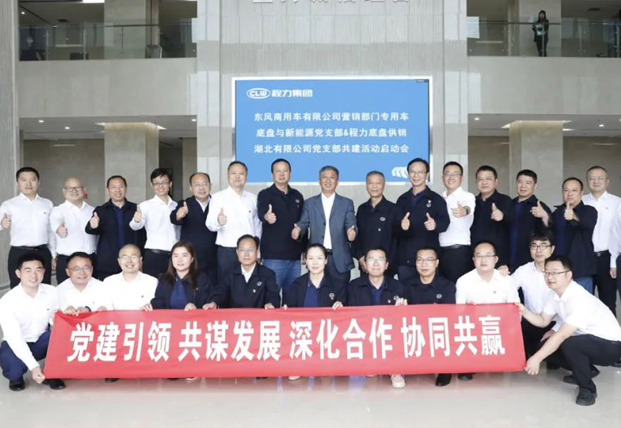 5月末,程力集團黨委牽頭,東風商用車有限公司營銷部門專用車底盤與新能源黨支部攜手程力底盤供銷湖北有限公司黨支部,聯合開展“奮進新時代,共創向未來”共建活動。