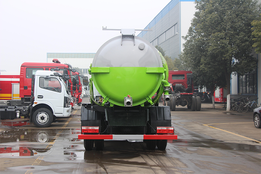 上裝配置 罐體采用國標6mm厚優(yōu)質(zhì)碳鋼板制作,圓形罐體,國產(chǎn)多路閥,億豐8T真空油泵,防溢閥,視污管,罐體帶舉升,后蓋液壓開啟,帶手動鎖緊裝置,100排污球閥,具有真空度高、噸位大、效率高、用途更廣泛的特點。
