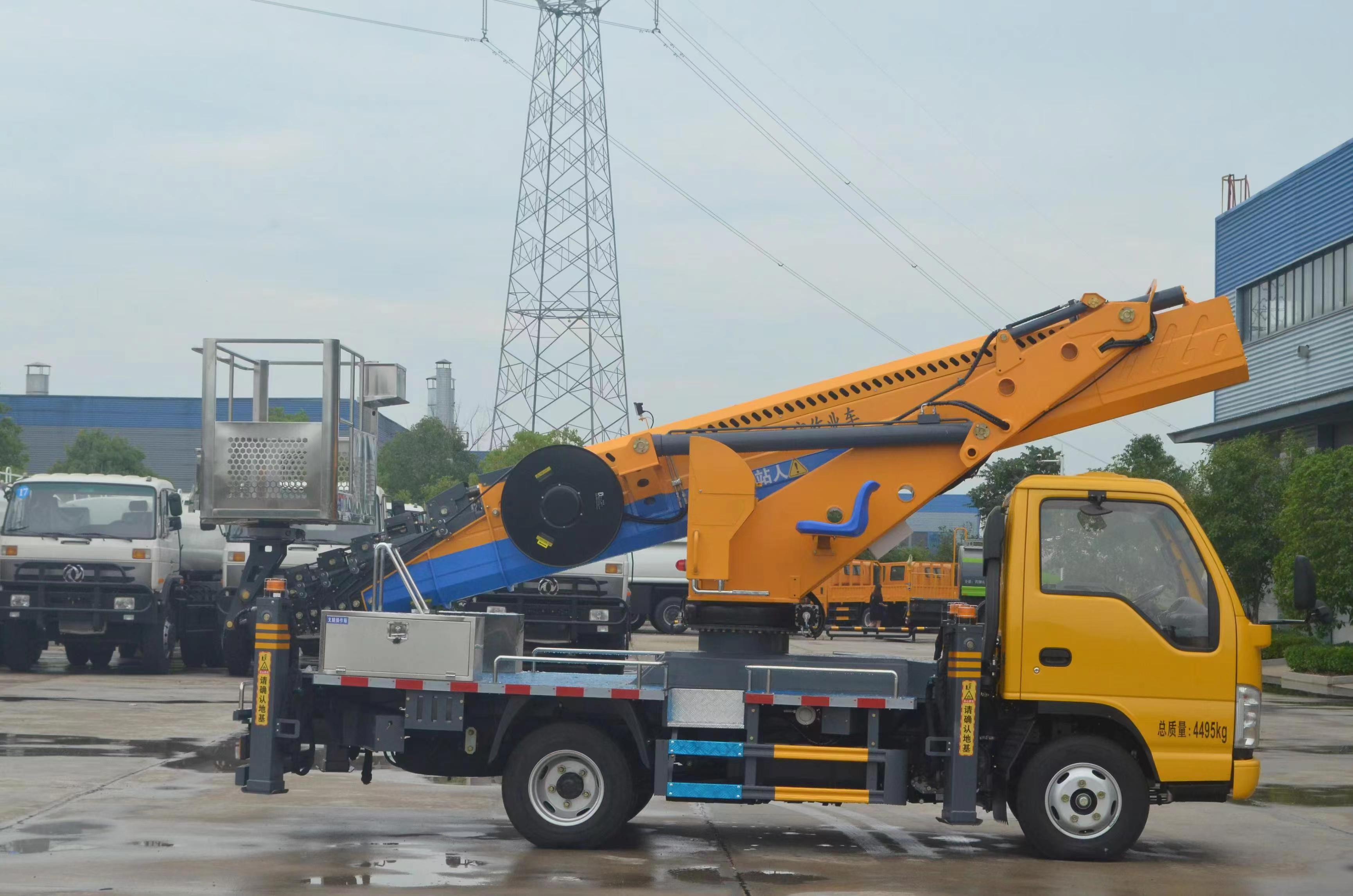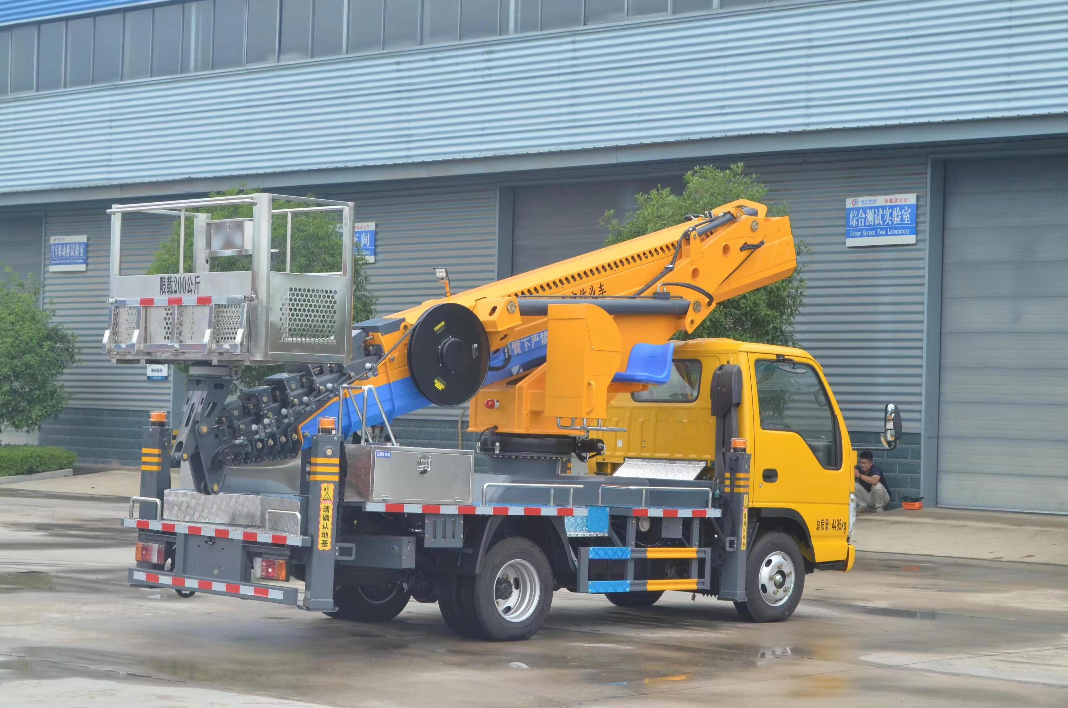 上裝配置 不銹鋼圍欄及防滑走臺板,高強度不銹鋼工作平臺 (尺寸:1600X700X1000mm),七節十四邊形型工作臂,同步伸縮,回轉裝置 360 度連續回轉,前 V 后 V 型支腿,單獨可調(控制),電控操作,另配有手動應急操作 控制系統,CAN 總線控制系統,配有無線遙控器、實現 無級調速,靜液自動調平; CL5045JGK6ADS 型高空作業車基本功能安全配置:作業車可以實現平臺載荷 200KG,最大作業高度 33 米,最大作業幅度 15 米。 上下車自動互鎖裝置,用于上下車互鎖,防止誤操作發生危險,手動應急泵,當發動機及主泵發生故障時,可通過應急系統將工作人員送回到地面及整車收回至行車狀態,工作平臺緊急停止 裝置,緊急動限制工作幅度,當工作幅度達到規定值時,自動限制危險方向工作;當出現支腿支地不實時(軟腿),舉升臂架將限制危險方向工作。(選配) 夜間安全警示裝置,在車輛上有工程頻閃燈,LED 照明燈發動機點火熄火,控制器可對發動機進行點火,熄火控制;被限制工作時,可通過“強制”功能拓展工作;